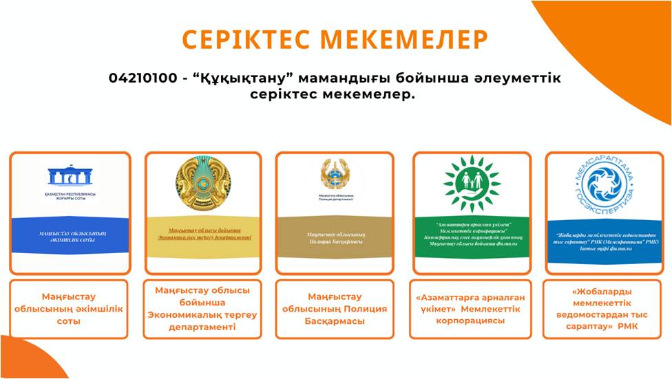 «Техникалық және кәсіптік, орта білімнен кейінгі білім беру ұйымдары үшін кәсіптік практиканы ұйымдастыру мен өткізу қағидаларын және практика базалары ретінде кәсіпорындарды (ұйымдарды) айқындау» Қазақстан Республикасы Білім және ғылым министрінің 2016 жылғы 29 қаңтардағы № 107 бұйрығы» қағидалары туралы,«Білім беру қызметтерін көрсетудің үлгілік шартының және кәсіптік тәжірибеден өткізуге арналған үлгілік шарт нысандарын бекіту туралы» Қазақстан Республикасы Білім және ғылым министрінің 2016 жылғы 28 қаңтардағы № 93 бұйрығы, Қазақстан Республикасының Еңбек кодексі, Қазақстан Республикасы Білім және ғылым министрінің 11.09.2013 жылғы №369 бұйрық «Техникалық және кәсіптік, орта білімнен соңғы мекеменің типтік ережесін бекіту туралы» заңдарына «Білім берудің тиісті деңгейлерінің мемлекеттік жалпыға міндетті білім беру стандарттарын бекіту туралы» Қазақстан Республикасы Үкіметінің 2012 жылғы 23 тамыздағы №1080 қаулысына өзгерістер мен толықтырулар енгізу туралы, ҚРМЖМС 5.03.005-2009 «Кәсіби тәжірибе. Негізгі ережелер» заңдарын басшылық ала отырып облысымыздың барлық мамандықтар бойынша 60 мекемесімен әлеуметтік серіктестік туралы келісім шарт жасақталған.