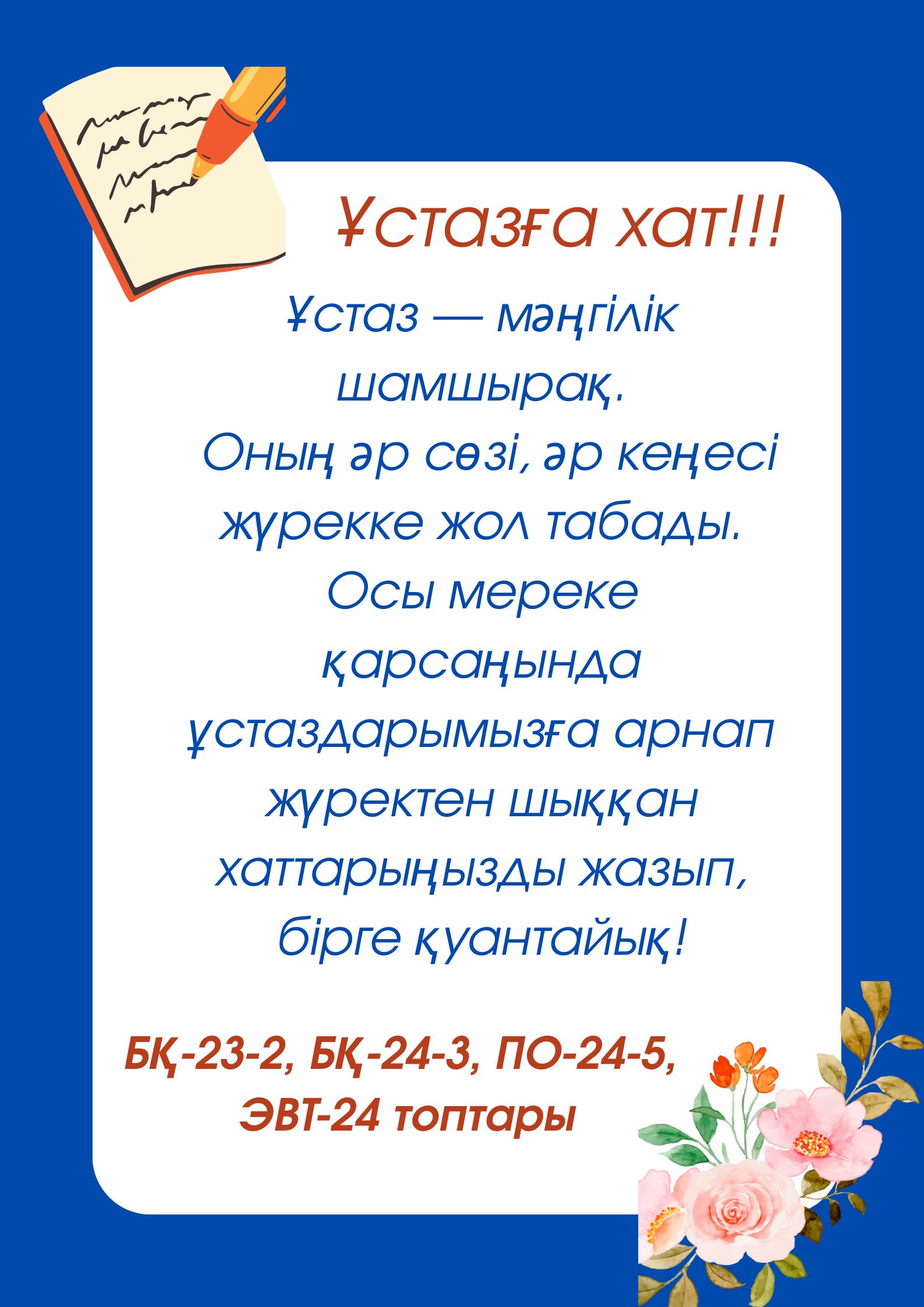 ҰСТАЗДАР КҮНІНЕ ОРАЙ ҚҰТТЫҚТАУ